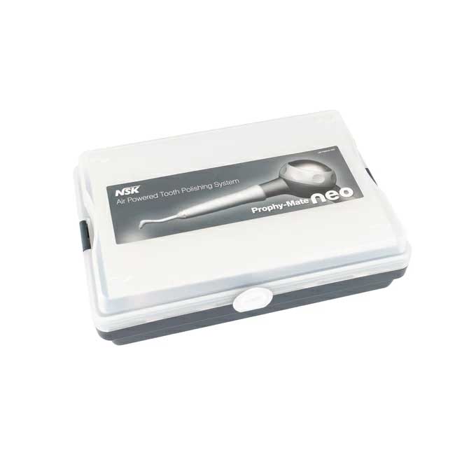 - Усовершенствованная система Prophy-Mate neo – это удобство форм и отличная функциональность. Легкость, прекрасная балансировка, компактная камера для порошка, наконечник NSK, вращающийся на 360° даже при высоком давлении, делают данную систему отличным инструментом для врача. Данная система сокращает время снятия зубного камня y и налета. Имеются насадки y с углом 60° и 80°.