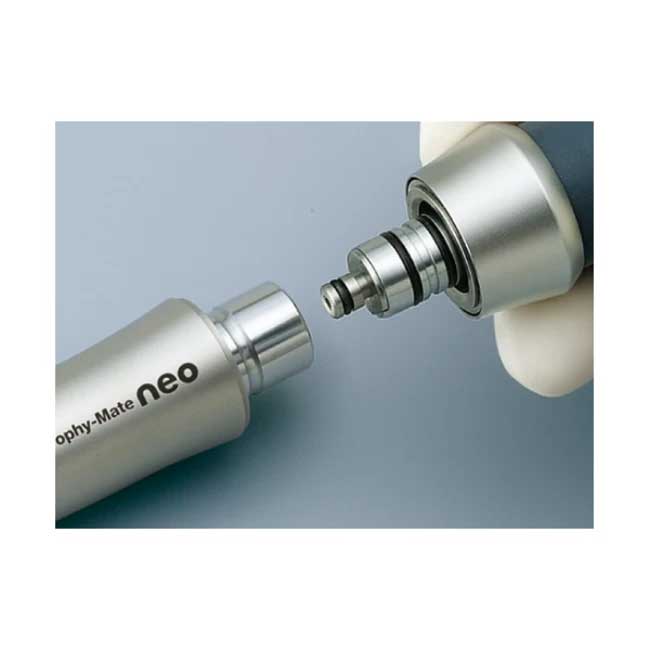 - Простое крепление с помощью одного движения руки. Prophy-Mate neo специально сконструирован для удобного и простого крепления напрямую на переходники NSK, а также для использования с большинством переходников известных мировых производителей. Улучшенные полирующие качества