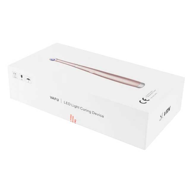 VRN Vafu Black – беспроводная светополимеризационная лампа повышенной мощности в комплекте со сменным наконечником и беспроводной зарядной станцией со встроенным радиометром. Она оборудована четырьмя светодиодами с тремя разными вариантами длины волны, охватывающими спектр 385-515 нм. Это позволяет максимально эффективно работать с современными светоотверждаемыми материалами. Высочайшая интенсивность светового потока дает возможность проникать сквозь керамику и полимеризовать базовые цементы на основе смолы подобно качественному галогеновому свету. Отличается от VRN Vafu цветом корпуса.